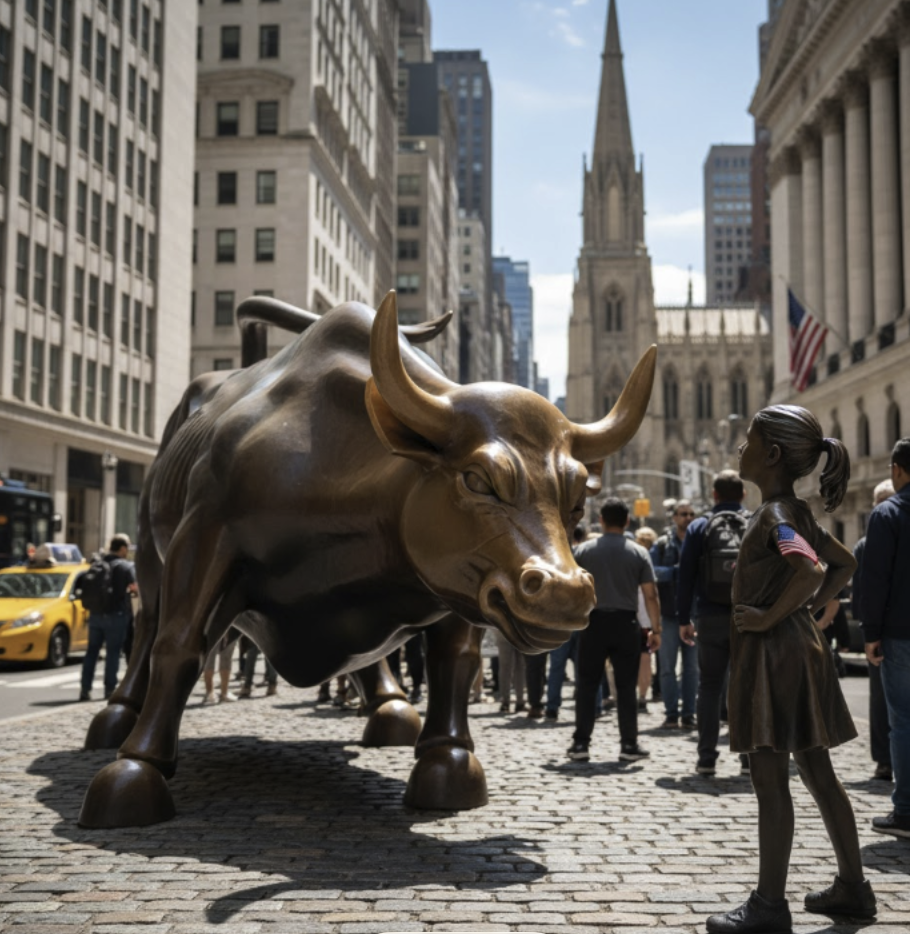• Iconic statue symbolizing female empowerment, facing the Charging Bull.